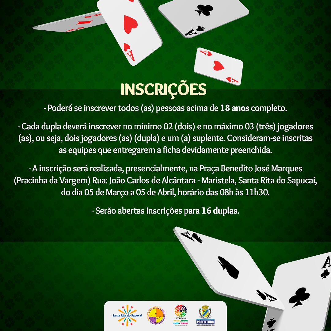Vem aí o 1º Torneio de Truco de Santa Rita do Sapucaí