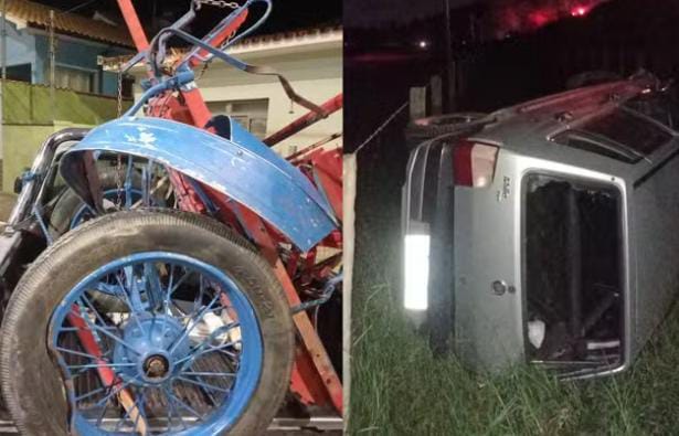 Três pessoas ficaram feridas após um carro atingir uma charrete na noite deste domingo (14) na MGC-383, entre Itajubá e Piranguçu.