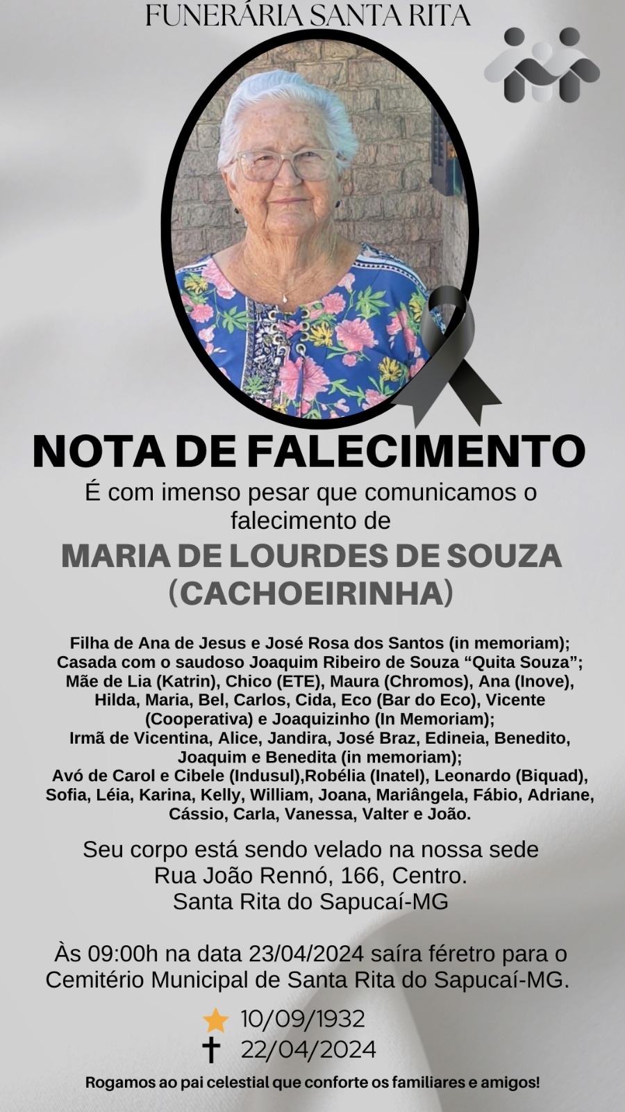 A imagem da nota é fornecida pela Funerária Santa Rita.