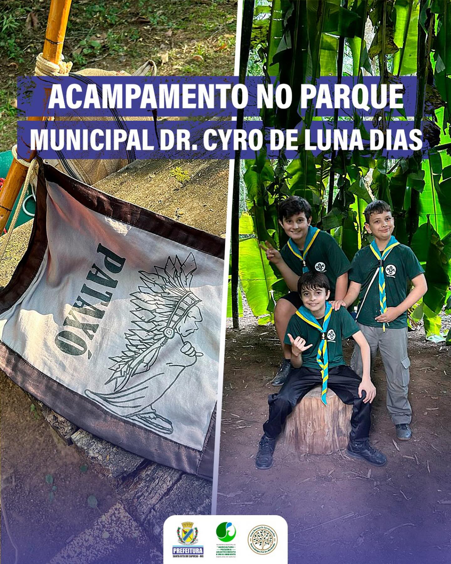 Participantes do Grupo de Escoteiros Papa Léguas acampam no Parque Ecológico Municipal Dr. Cyro De Luna Dias neste final de semana