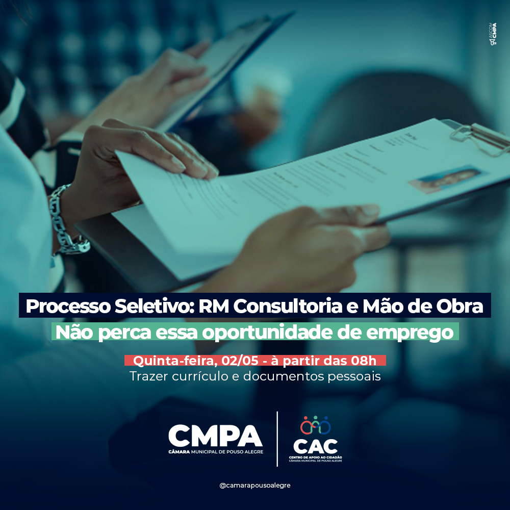 Pouso Alegre – CAC da Câmara de Vereadores vai receber processo seletivo para a contratação de Cozinheiros e Monitores Educacionais