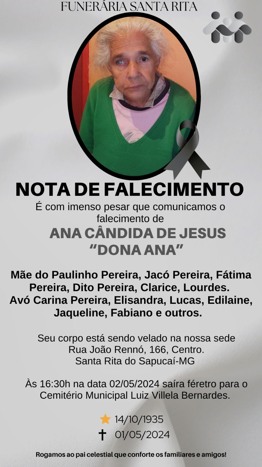 A imagem da nota é fornecida pela Funerária Santa Rita.