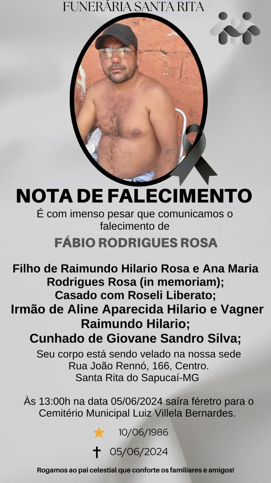 NOTA DE FALECIMENTO – Fábio Rodrigues Rosa