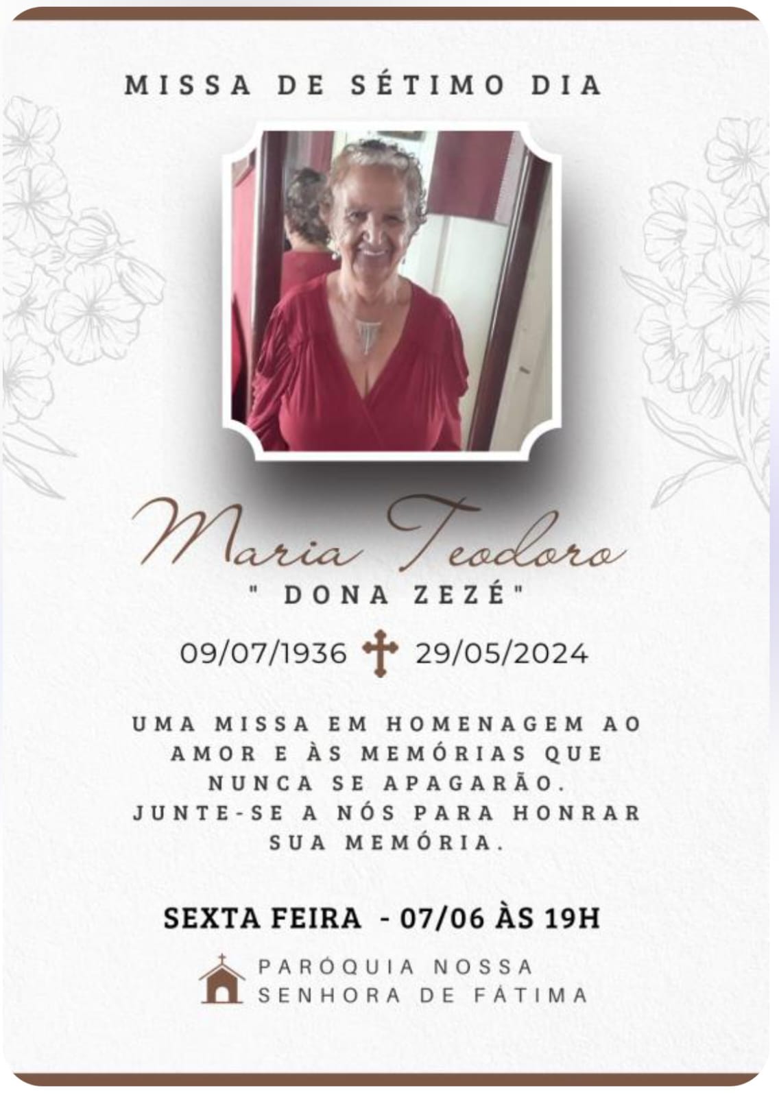 MISSA DE SÉTIMO DIA – Maria Tedodoro