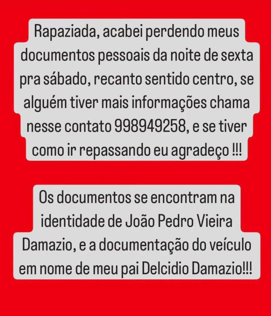 DOCUMENTOS PERDIDOS – João Pedro Vieira Damazio