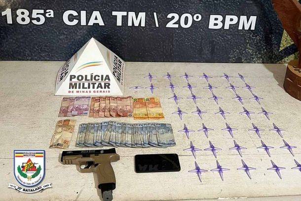 Os policiais também encontraram 150 pinos de cocaína e R$ 205,00 em espécie.