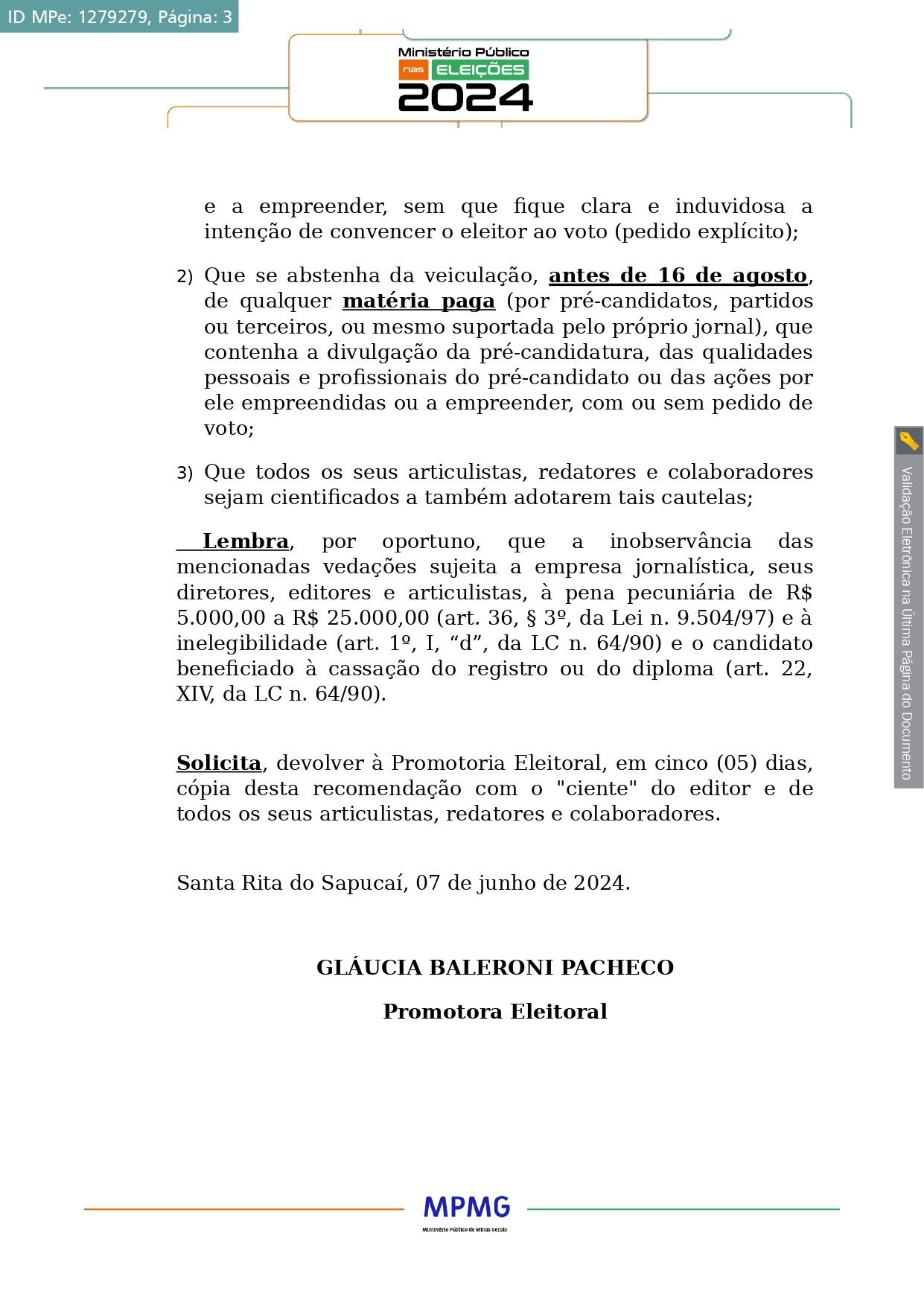 RECOMENDAÇÕES – PROMOTORIA ELEITORAL DE SANTA RITA DO SAPUCAÍ