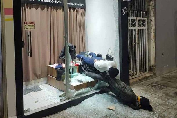 Durante a ação, a loja teve a vitrine estilhaçada e manequins foram atirados na calçada.