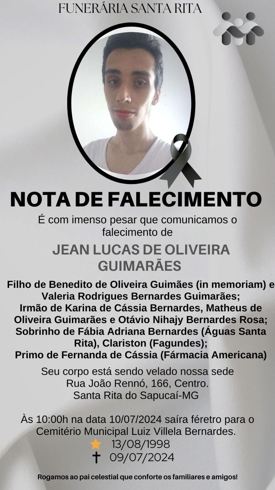 A imagem da nota é fornecida pela Funerária Santa Rita.