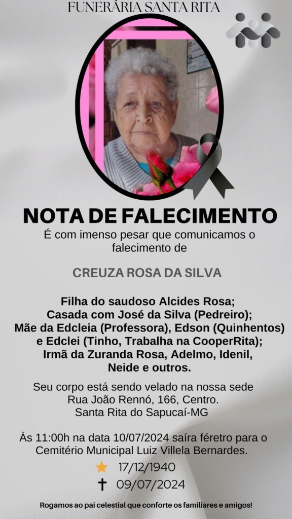 A imagem da nota é fornecida pela Funerária Santa Rita.
