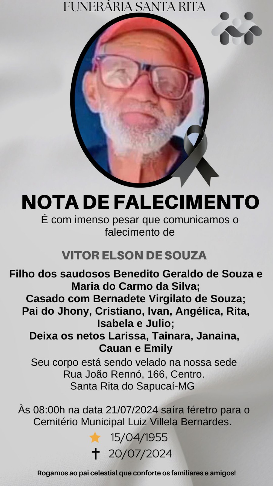 NOTA DE FALECIMENTO – Vitor Elson de Souza