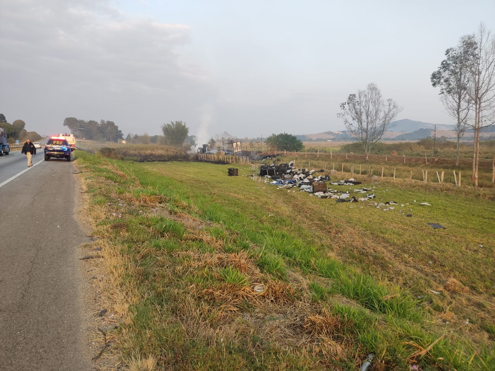 Carreta sai da pista e pega fogo na Fernão Dias em Careaçu