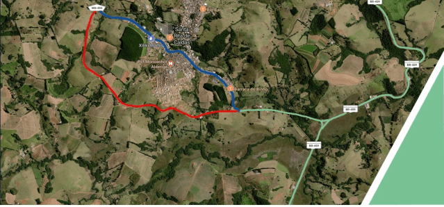 O trecho de cinco quilômetros será totalmente interditado a partir de 9 de setembro, por um período de aproximadamente 60 dias. Durante esse período, o tráfego de veículos leves será desviado para o perímetro urbano de Santa Rita de Caldas (veja mapa). Assim que terminar a fase inicial das obras de reconstrução do pavimento entre os quilômetros 1 e 6, o trecho será parcialmente liberado ao tráfego, no sistema de Pare e Siga.
