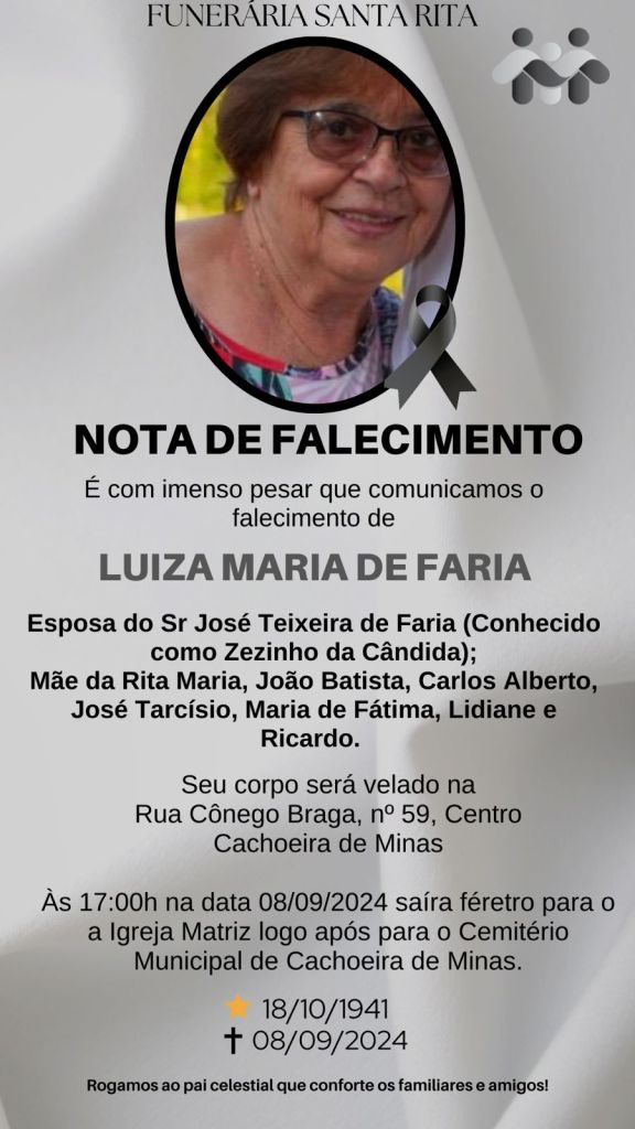 A imagem da nota é fornecida pela Funerária Santa Rita.