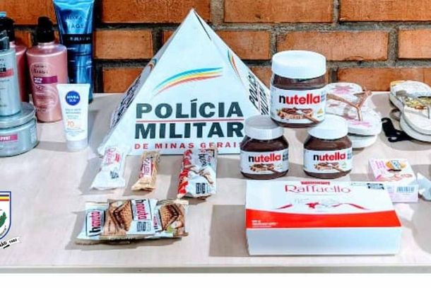 Durante a abordagem, foram encontrados com ele, vários produtos, principalmente de higiene pessoal, com preços mais altos. Ele também estava com outras sacolas com diversos produtos retirados das gôndolas e confessou que os itens foram furtados naquela farmácia e indicou outras vítimas também, todas na área central da cidade.