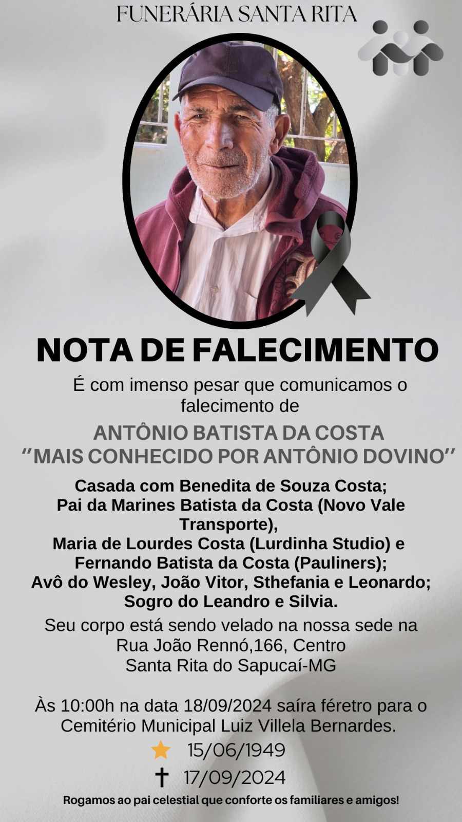 A imagem da nota é fornecida pela Funerária Santa Rita.
