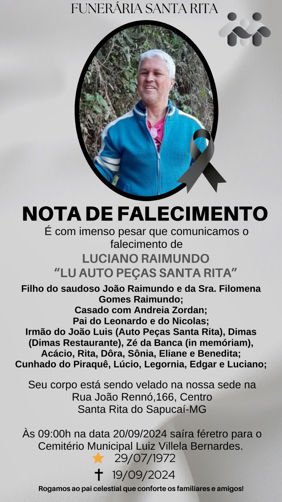 A imagem da nota é fornecida pela Funerária Santa Rita.