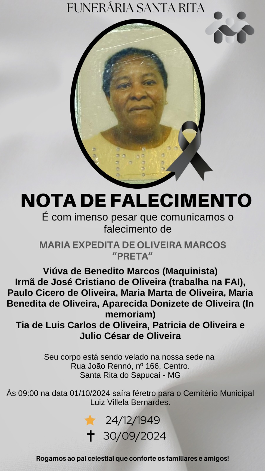 NOTA DE FALECIMENTO – Maria Expedita de Oliveira Marcos