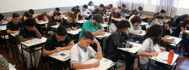 O simulado é realizado em dois dias, abrangendo as quatro áreas de conhecimento avaliadas no Enem. No dia 1/10, os estudantes fizeram provas de Linguagens, Ciências Humanas e Redação, cujo tema foi “Trabalho e qualidade de vida: conciliação necessária na sociedade contemporânea”. Já no dia 3/10, serão testados em Ciências da Natureza e Matemática.