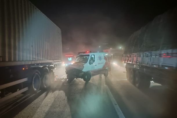 Ambulância tenta desviar de animal e colide em traseira de bitrem, homem morre