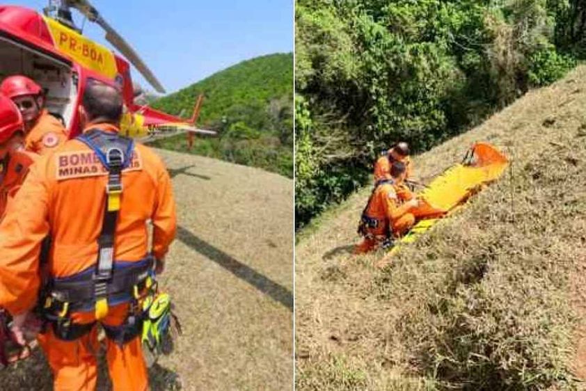 Homem é atacado por boi em local de difícil acesso em Maria da Fé e é resgatado por helicóptero
