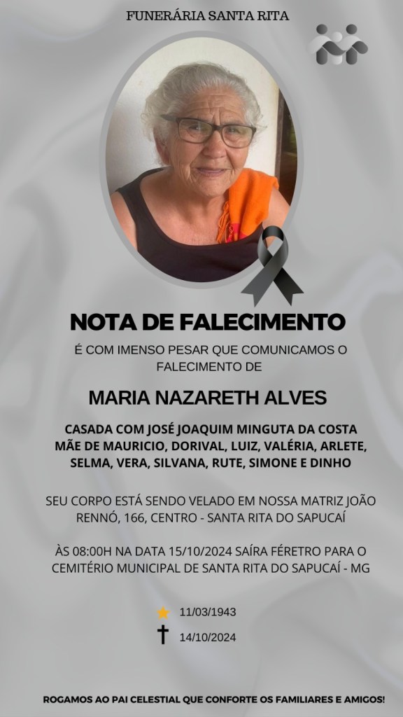 NOTA DE FALECIMENTO – Maria Nazareth Alves