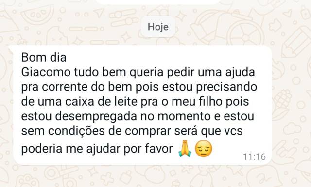 Olá pessoal, a Corrente do Bem recebeu esse pedido de ajuda, quem puder nos ajudar poderá deixar as doações: