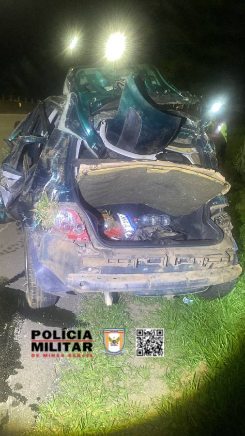 Carro capota na BR-459 em Pouso Alegre