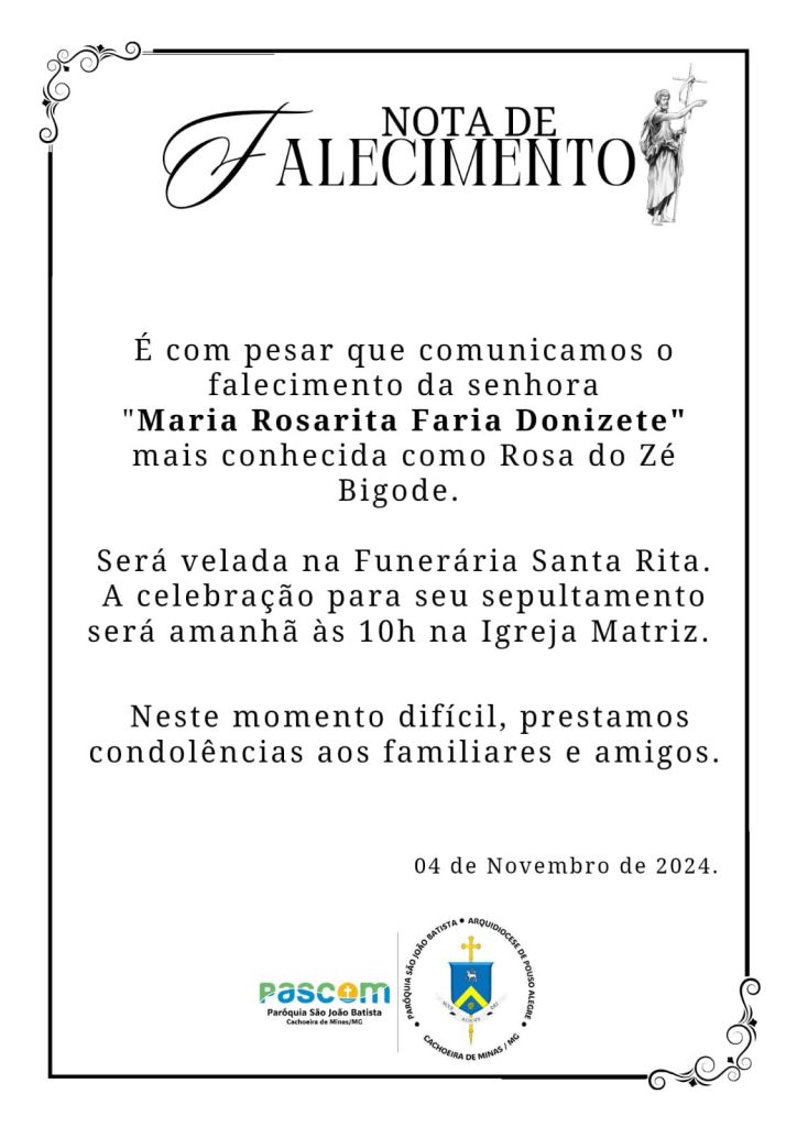 NOTA DE FALECIMENTO – Maria Rosarita Faria Donizete