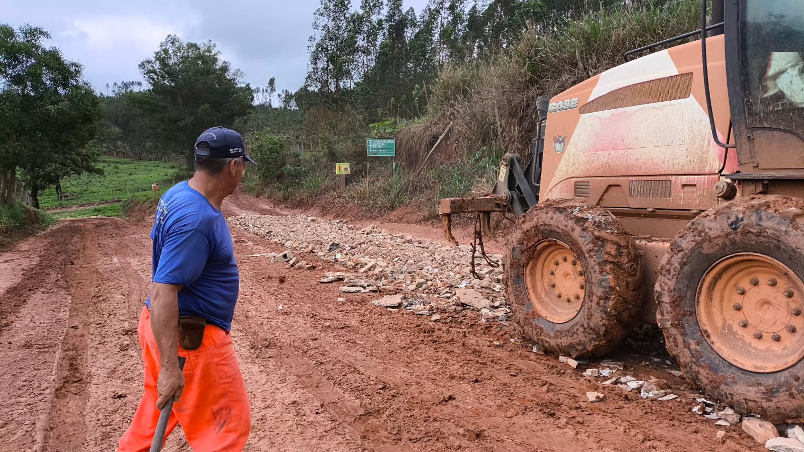 Prefeitura trabalhando em pontos afetados pelas chuvas nas estradas rurais
