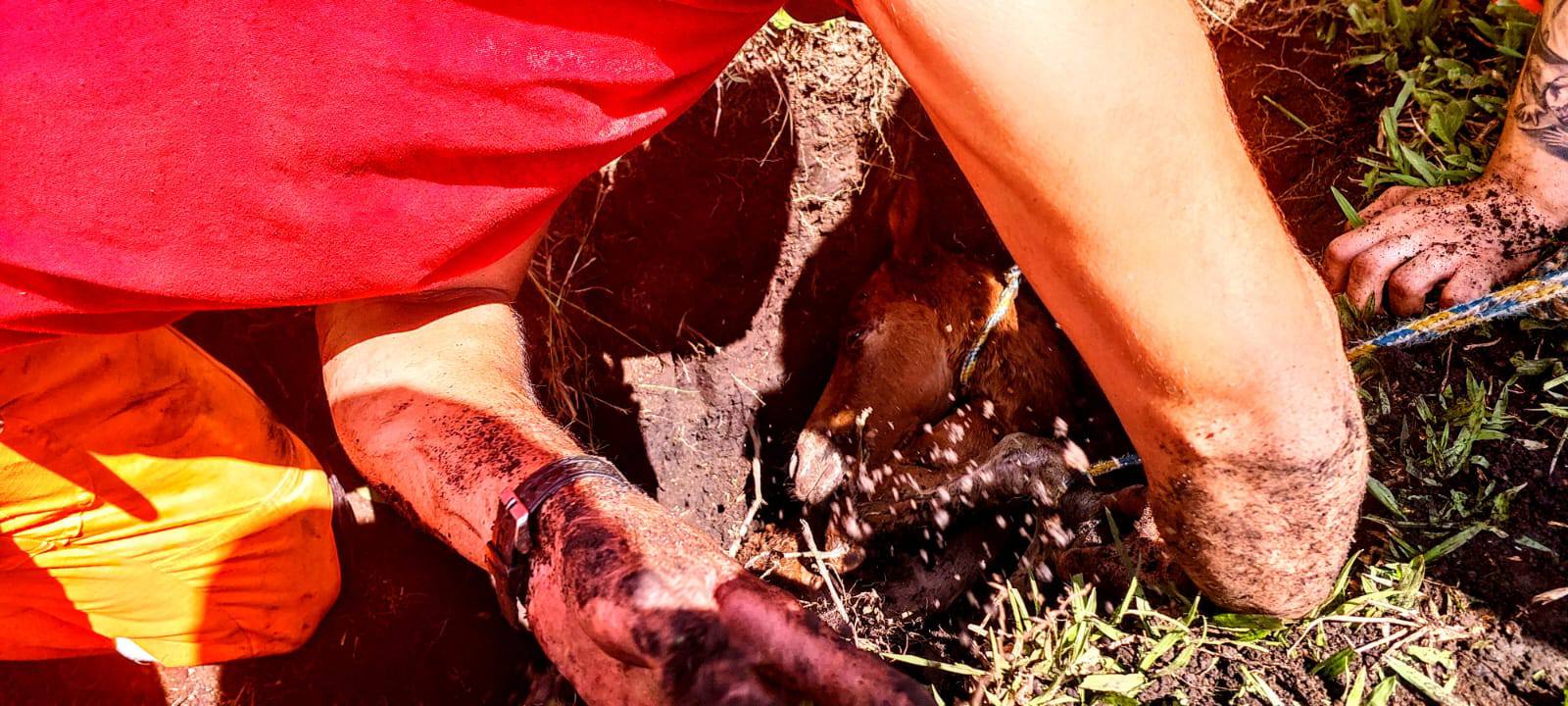Bombeiros resgatam potro recém-nascido após cair em buraco em Pouso Alegre