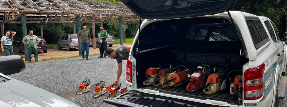 Equipamentos, que eram usados em atividades de desmatamento ilegal, serão destinados a trabalhos de manutenção e sinalização no Parque Estadual da Lapa Grande