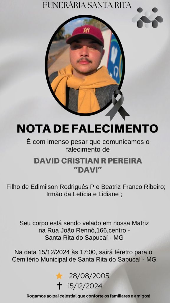 A imagem da nota é fornecida pela Funerária Santa Rita.