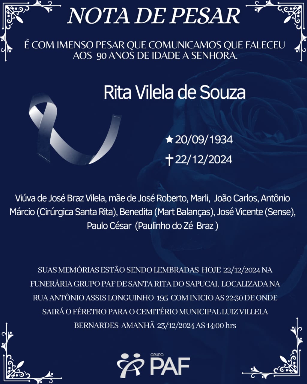 NOTA DE FALECIMENTO – Rita Vilela de Souza
