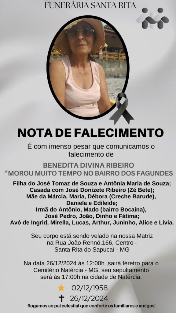 NOTA DE FALECIMENTO – Benedita Divina Ribeiro
