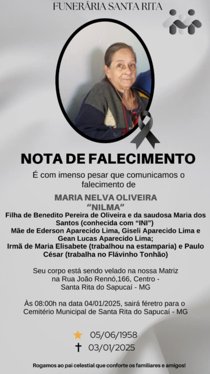 A imagem da nota é fornecida pela Funerária Santa Rita.