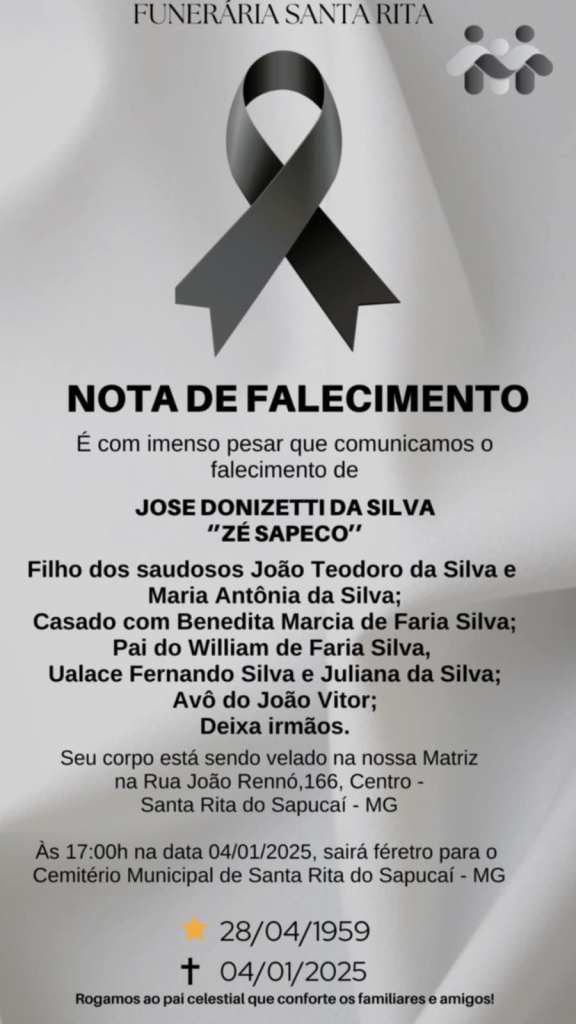 A imagem da nota é fornecida pela Funerária Santa Rita.