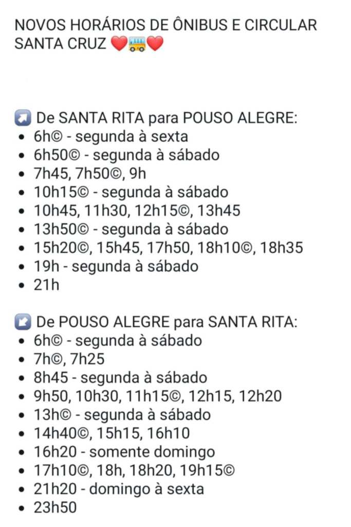 NOVOS HORÁRIOS DE ÔNIBUS E CIRCULAR SANTA CRUZ