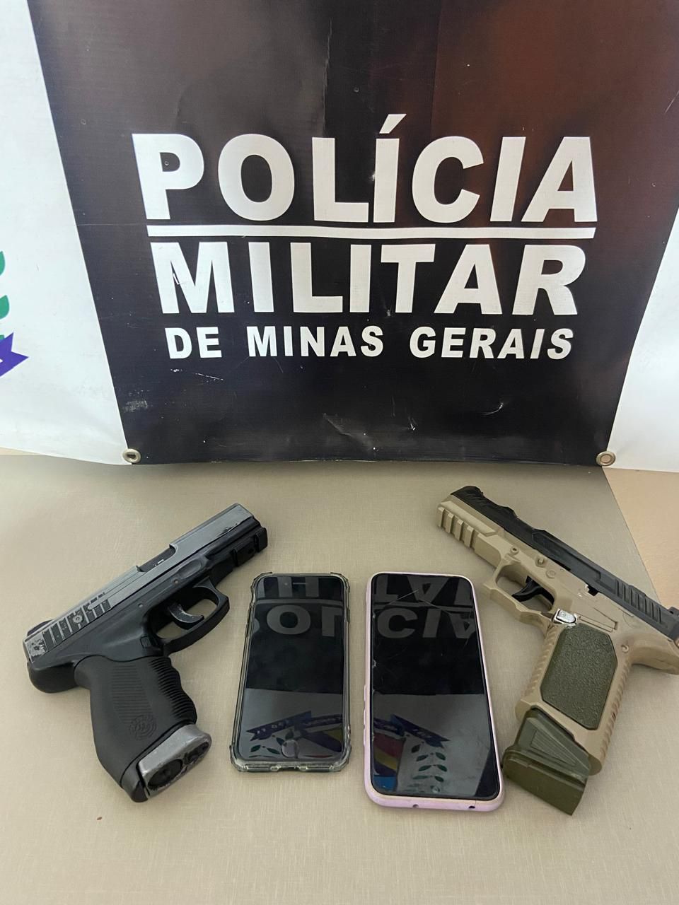 Os envolvidos e os simulacros de arma de fogo foram encaminhados à Delegacia de Polícia Civil.