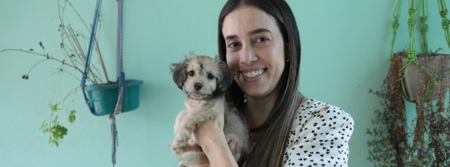 Em Pompéu, Letícia Gabriel conheceu, por meio da equipe de vigilância em saúde, o trabalho realizado pelo canil do Centro de Castração do município e adotou uma cadelinha que havia sido abandonada com a mãe e outros filhotes em um lote vago.