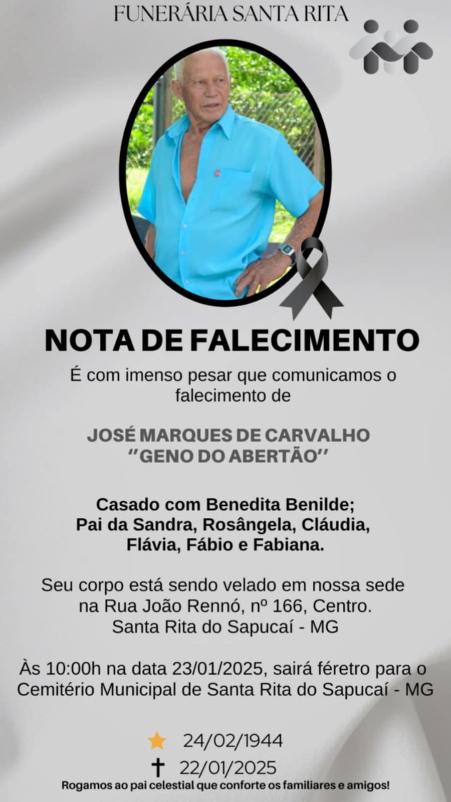 A imagem da nota é fornecida pela Funerária Santa Rita.