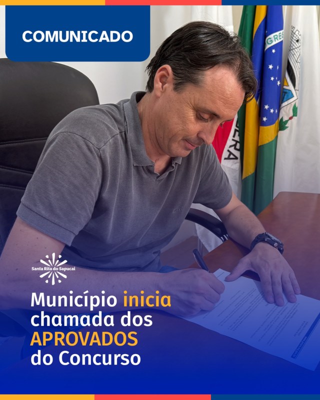 A Prefeitura de Santa Rita do Sapucaí informa que a primeira chamada do Concurso Público está em andamento, com a convocação de aprovados para a Secretaria de Educação, em razão do início das aulas.