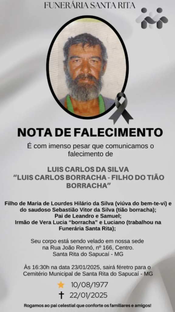 A imagem da nota é fornecida pela Funerária Santa Rita.