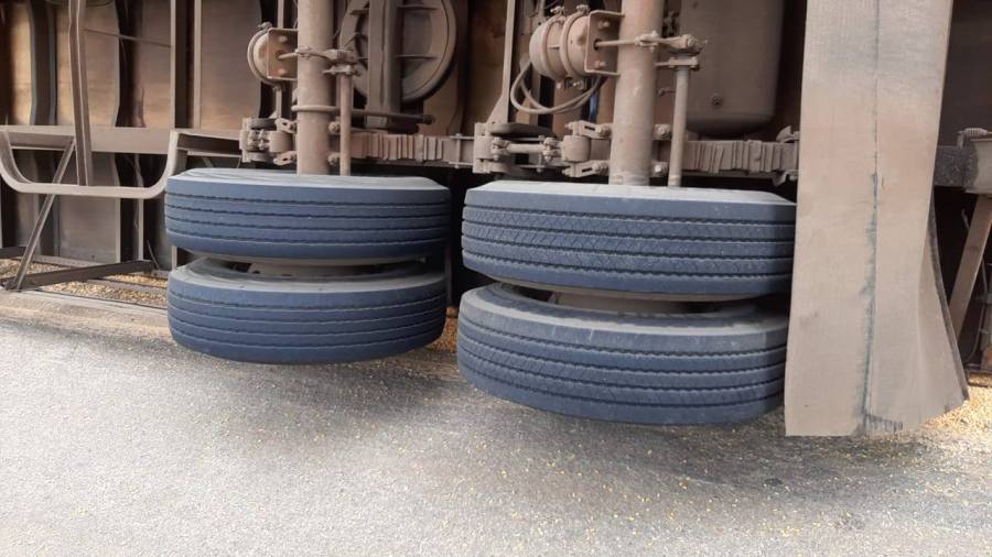 Carreta carregada de milho tomba na BR-459 em Santa Rita