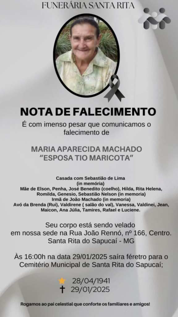 A imagem da nota é fornecida pela Funerária Santa Rita.