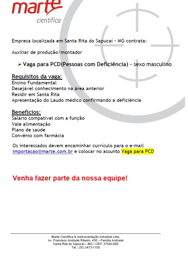 Vaga para PCD