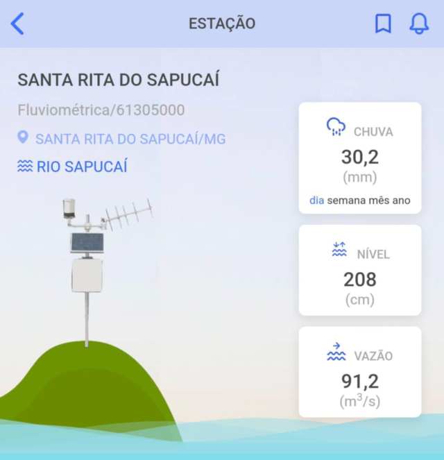 15h00 – Até o momento 30,2 mm de chuvas no dia de hoje, Rio Sapucaí com 2,08m e vazão de 91,2 m3 por segundo.