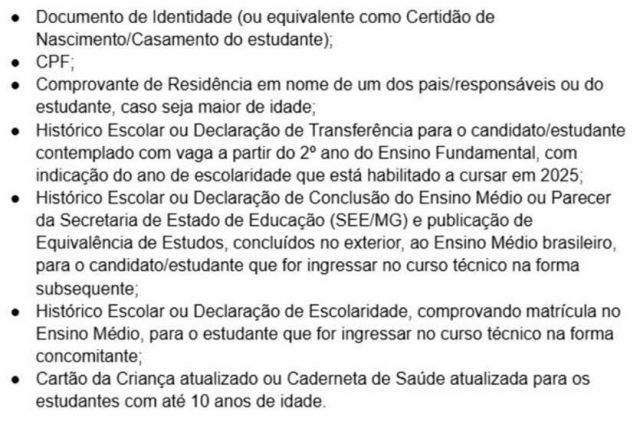 Após se inscrever nas vagas remanescentes pelo Sucem, os pais, responsáveis ou o próprio estudante (se maior de idade) devem apresentar os seguintes documentos para a confirmação da matrícula: