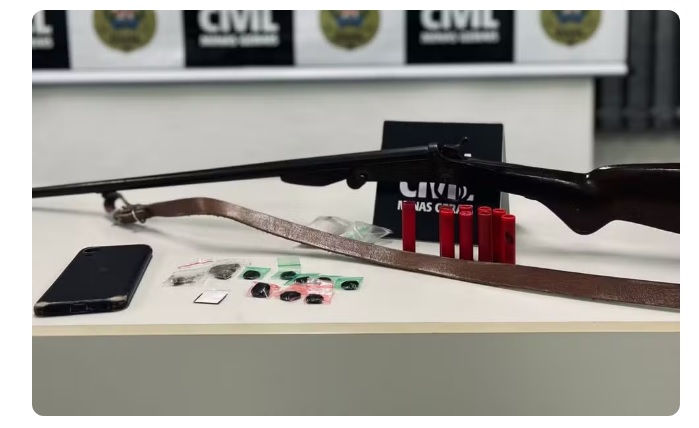 Em outro local, os policiais cumpriram um mandado de busca e apreensão, onde encontraram oito munições calibre .32 intactas, uma munição deflagrada e uma espingarda calibre .32. O investigado, de 36 anos, não foi localizado e encontra-se foragido.