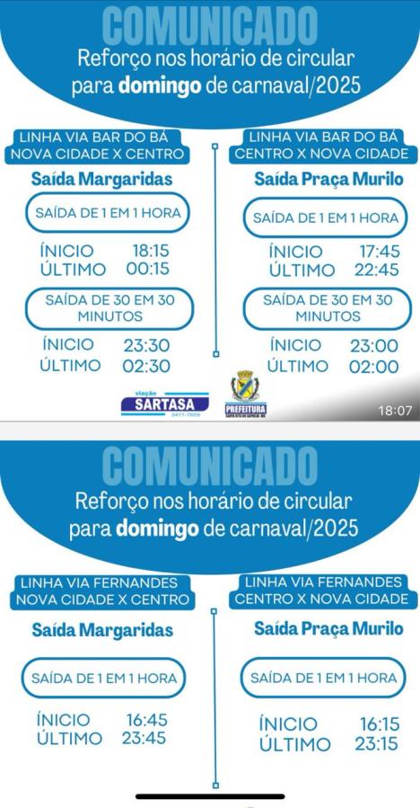 Reforço nos horários de circular para sábado de carnaval